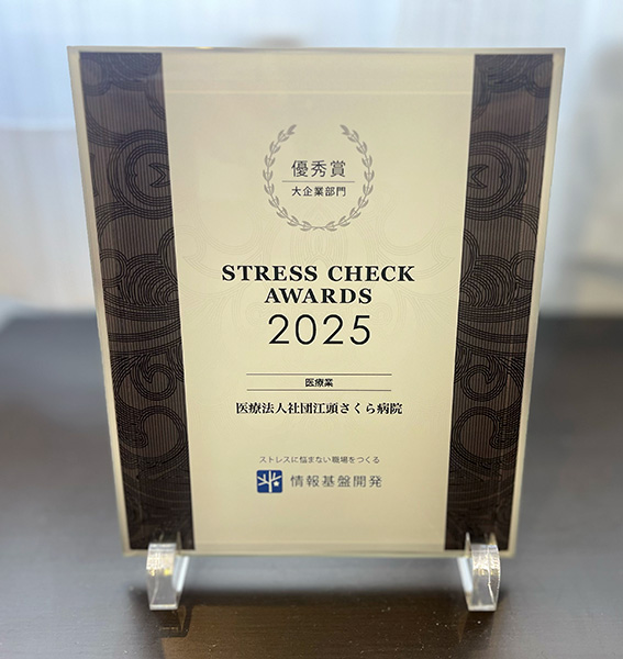 さくら病院は、株式会社情報基盤開発によるストレスチェック結果において、職場のストレス状況が良好であると評価され、「ストレスチェック大賞2025」医療業部門で優秀賞を受賞しました。職員が安心して働ける環境づくりに向け、今後も取り組みを進めてまいります。